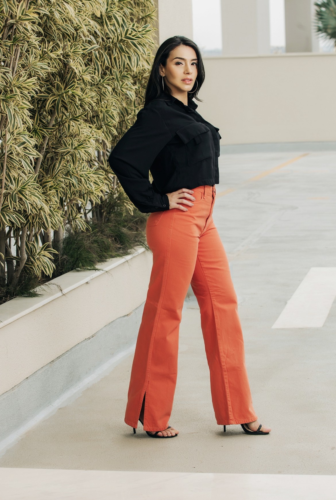 Calça jeans 100% algodão com elastano, modelo cintura alta, possui fenda lateral na barra. Tecido não marca, confortável e veste super bem.