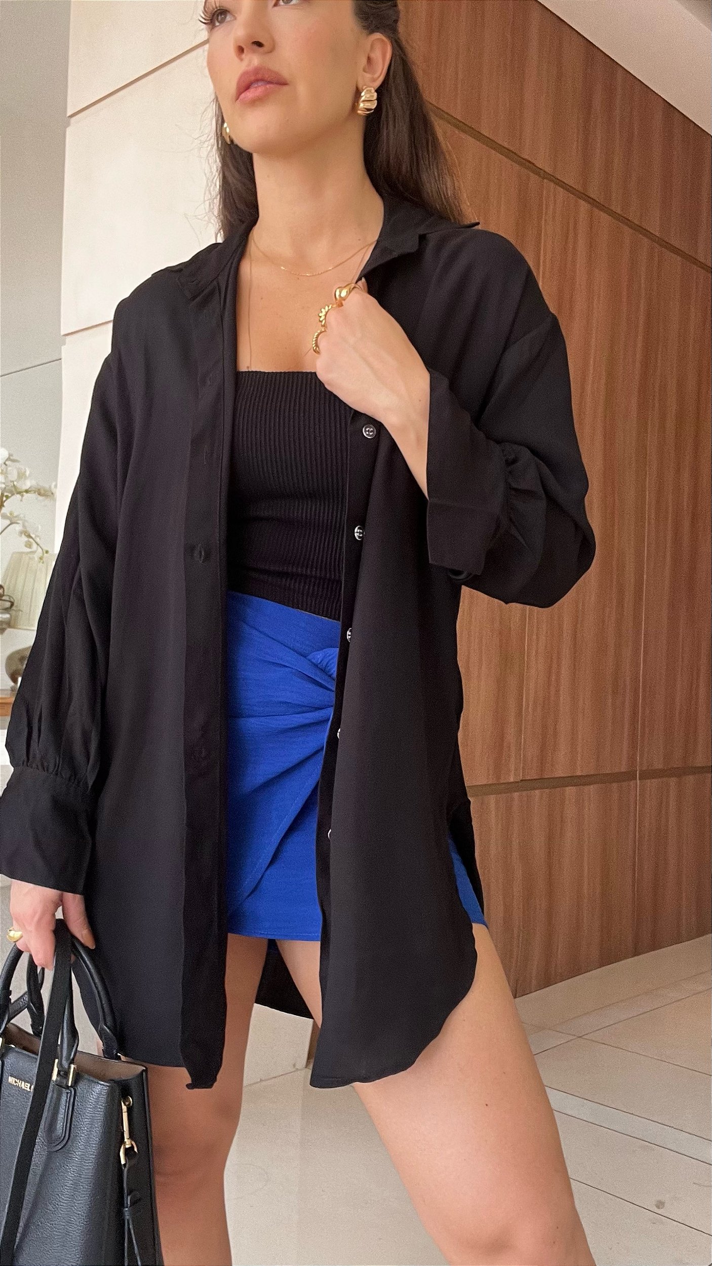 Camisa oversized com a parte de trás mais alongada, modelagem moderna que garante conforto e estilo. Possui mangas longas com punhos alongados, trazendo um toque sofisticado e atual à peça. Versátil e atemporal, é perfeita para compor looks que vão do casual ao elegante e até como saída de praia, podendo ser usada tanto solta quanto com sobreposições.