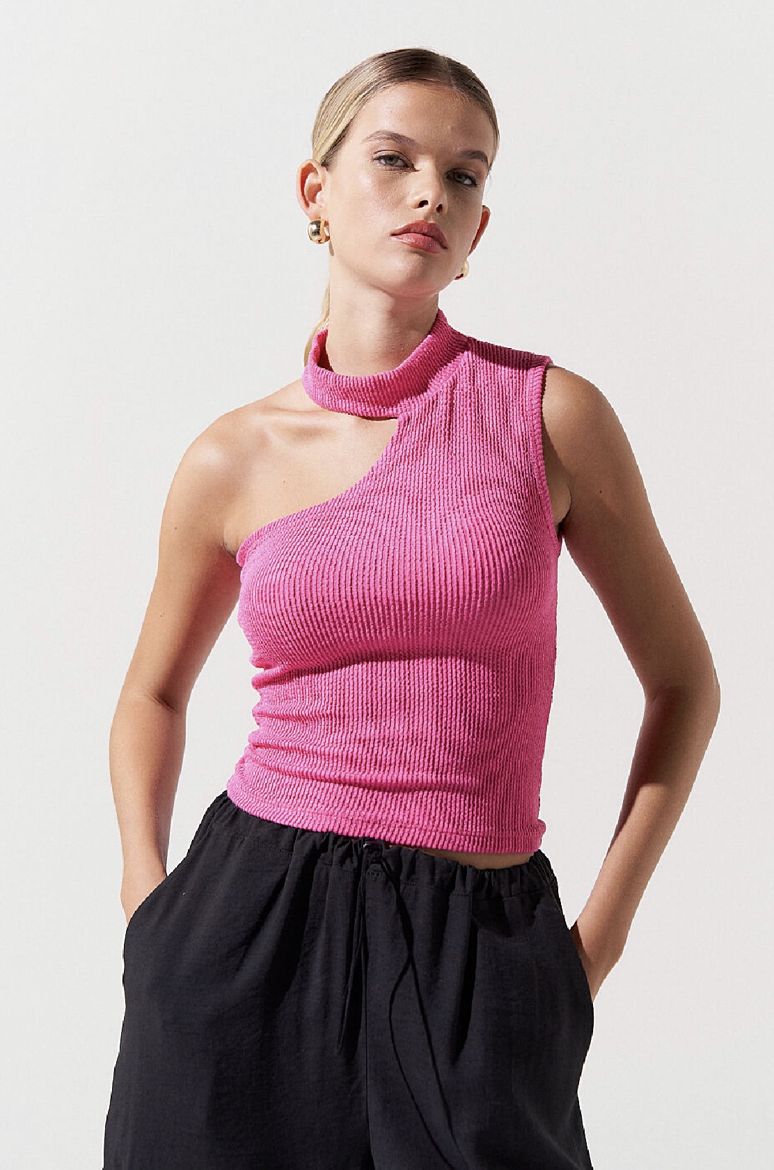 Blusa sem mangas e golinha alta e cava lateral mais acentuada.Tecido wavy canelado e macio.