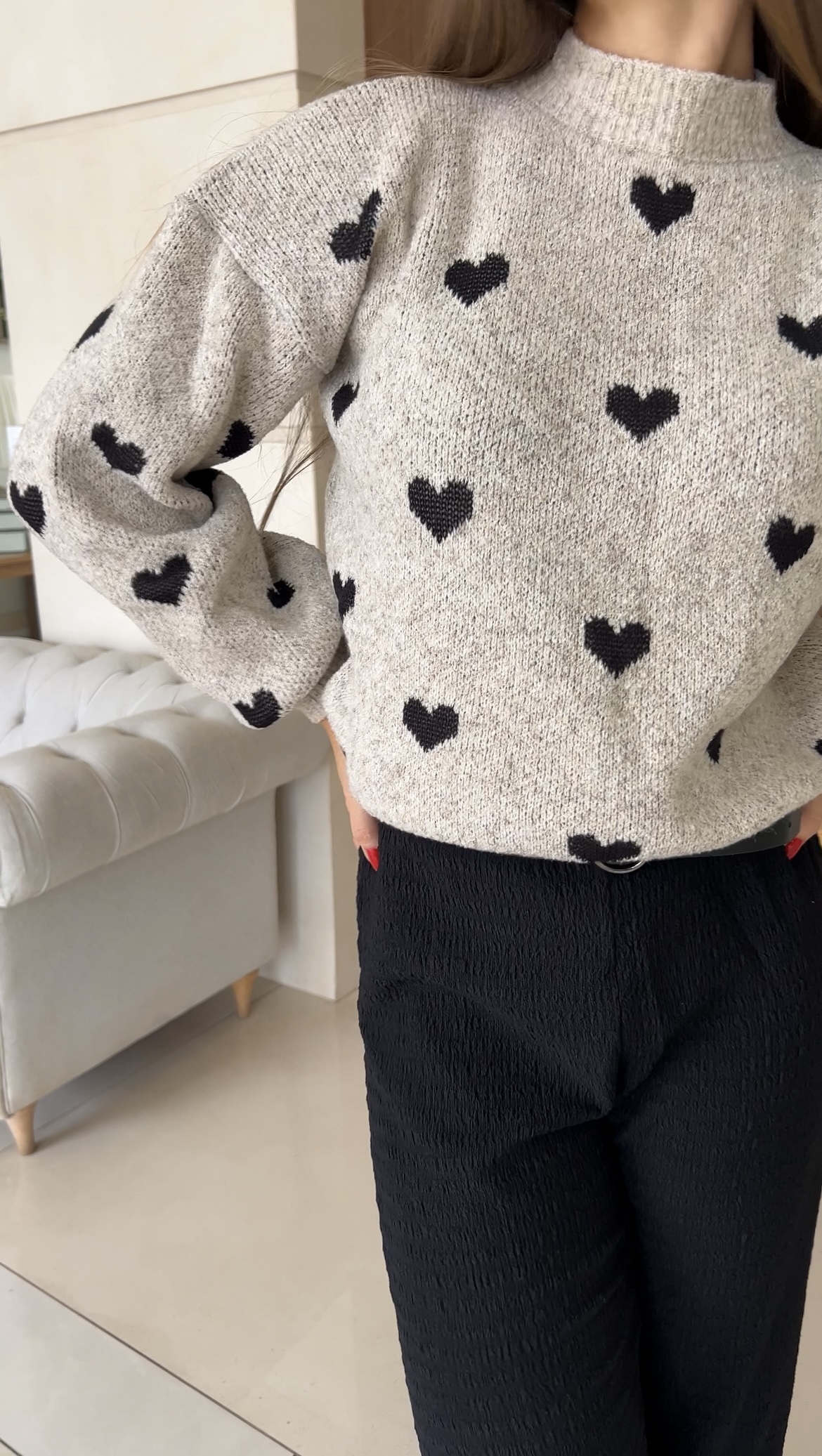 Tricot corações com comprimento padrão, possui gola media, cavas deslocada e punhos ajustados. Modelo com trama bem fechada e quentinha.